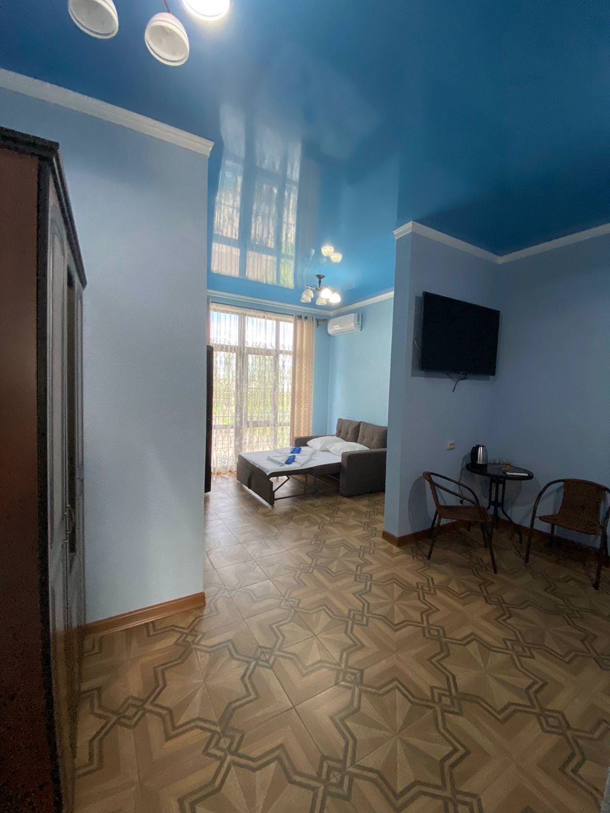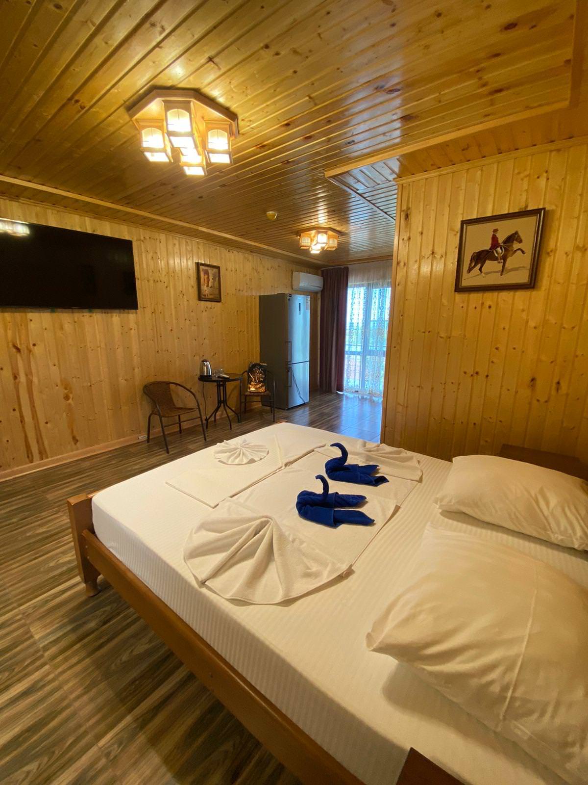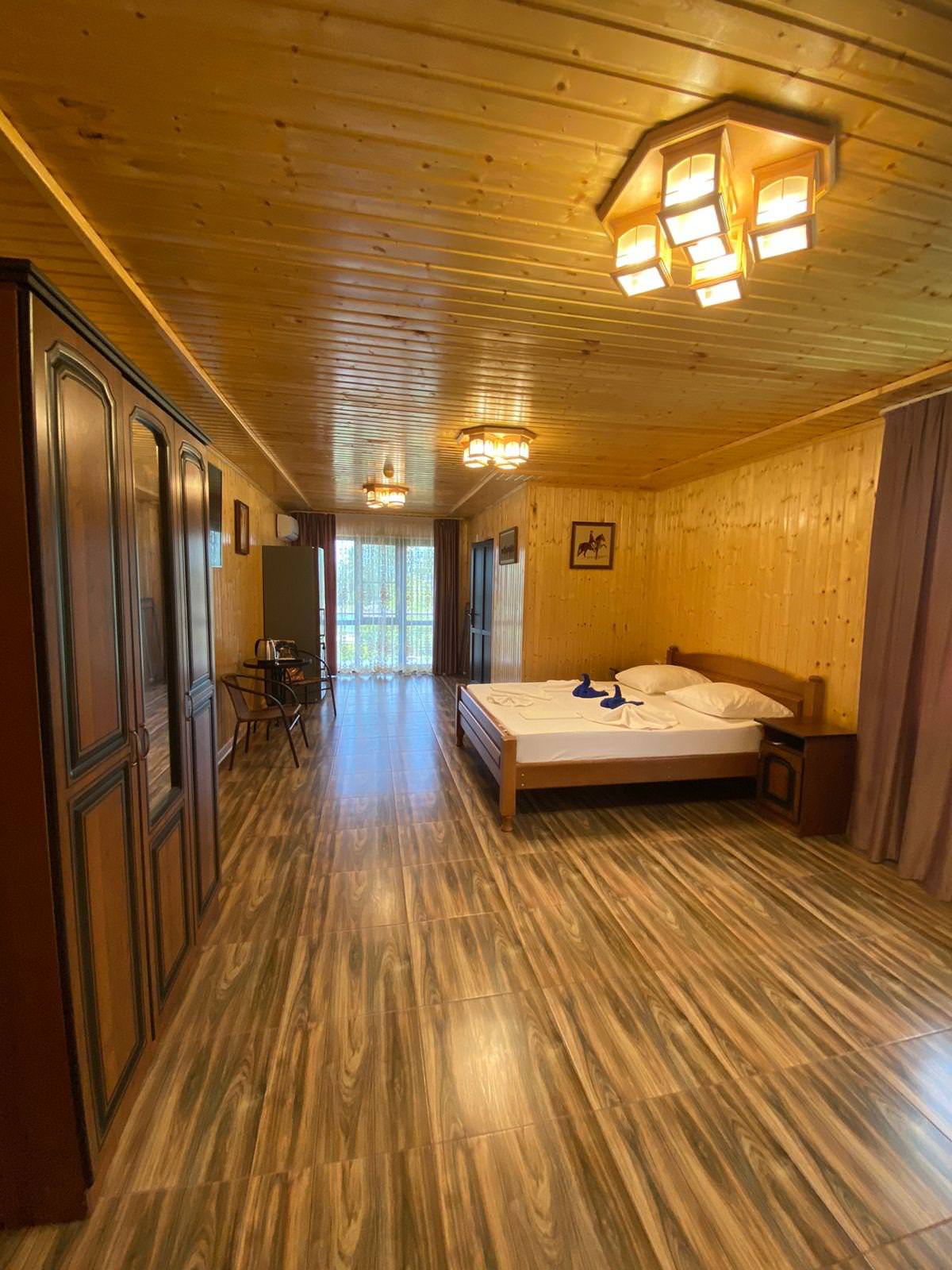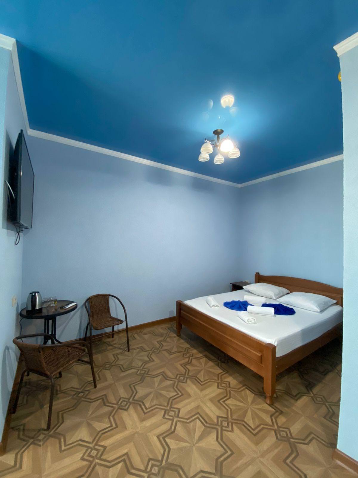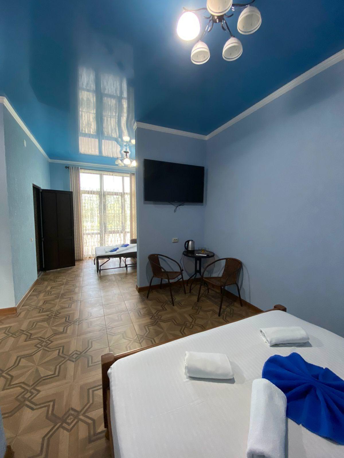 Четырёхместный номер с 1 двуспальной и 2 односпальными кроватями. В распоряжении гостей душ и туалет в номере, кондиционер, телевизор, холодильник, балкон, чайник с кружками, сушилка для белья, таз для стирки.